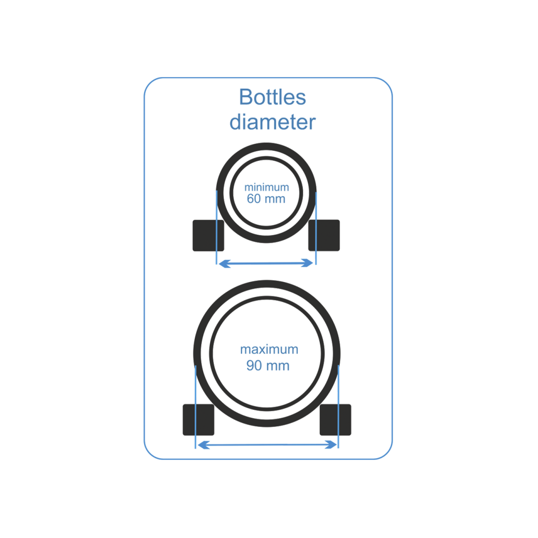 Capaciteit : 4 kisten van 12 flessen en 40 flessen (Minimale diameter 60mm. maximale diameter 90mm)