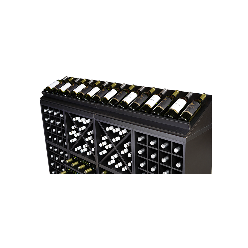Type : wijnrek met vakken, kruizen, uitschuifbare leggers en displayplank