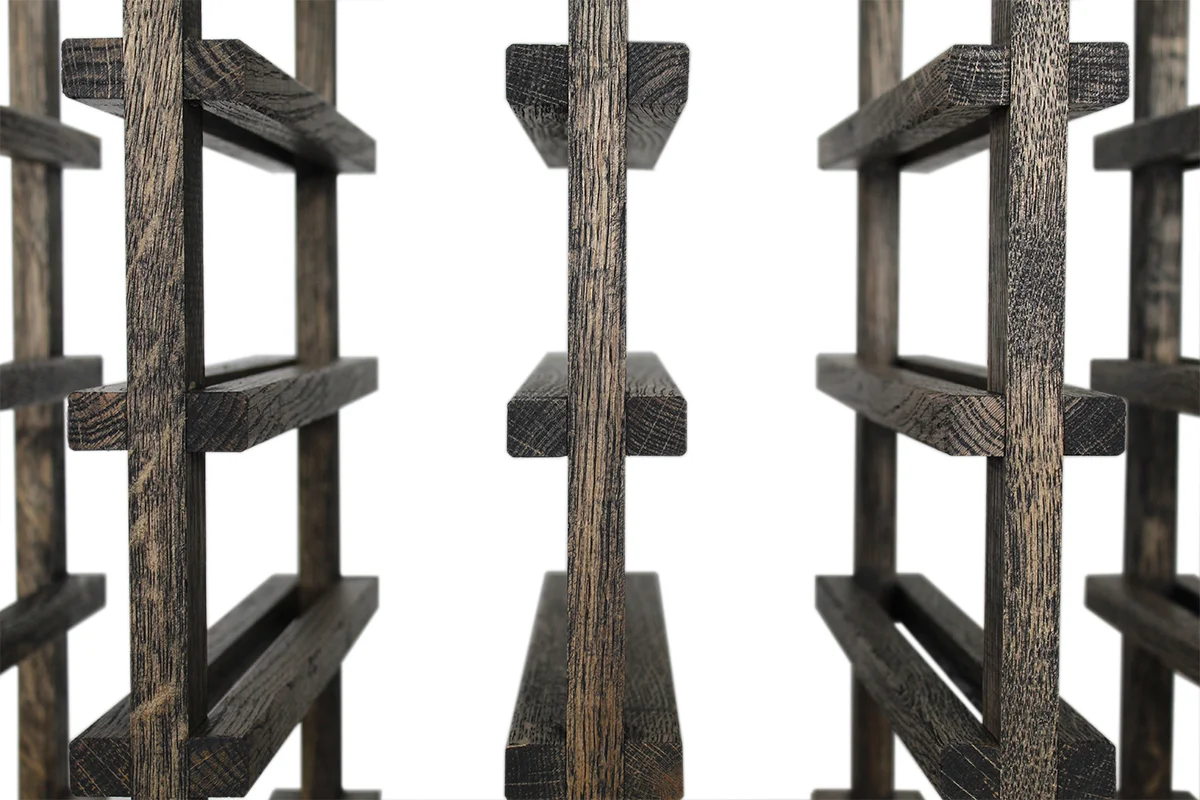 Dit wijnrek is vervaardigd uit hoogwaardig massief donker eikenhout, met zorg en aandacht voor detail, zoals de zorgvuldige afwerking van de buitenhoeken.