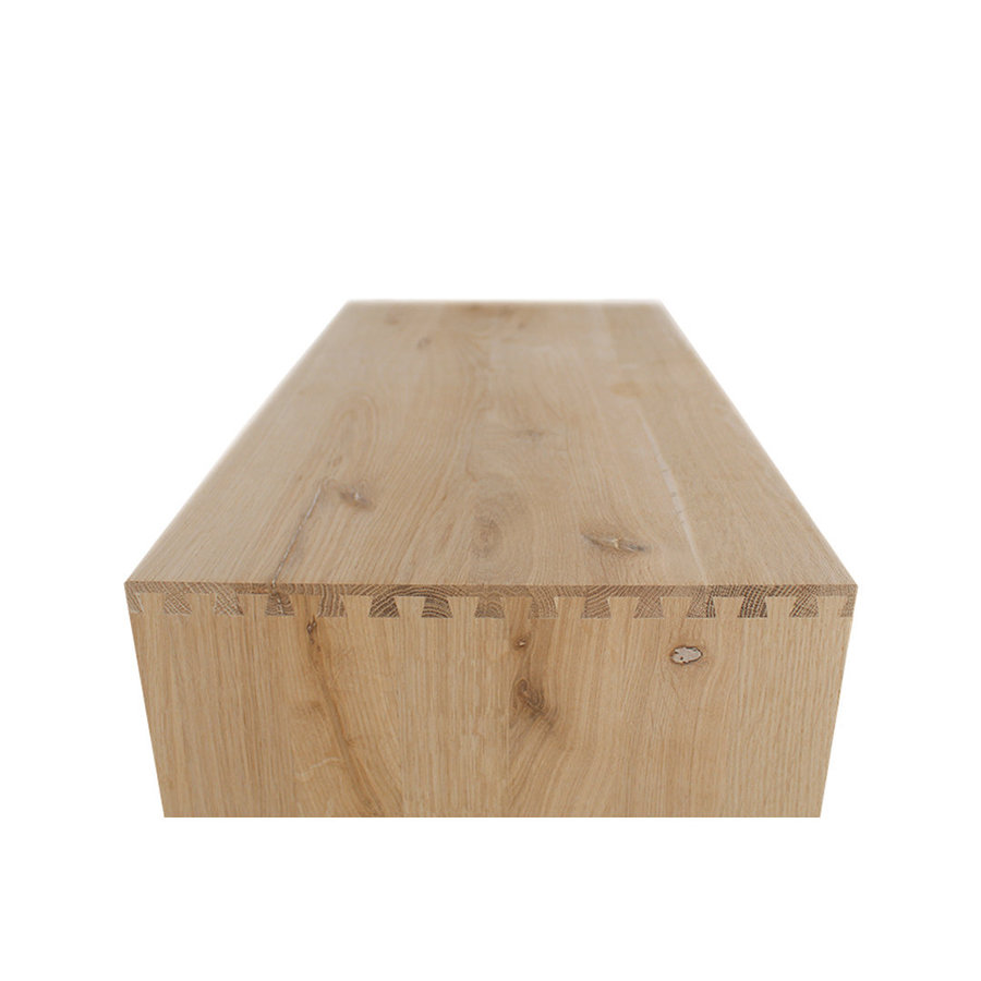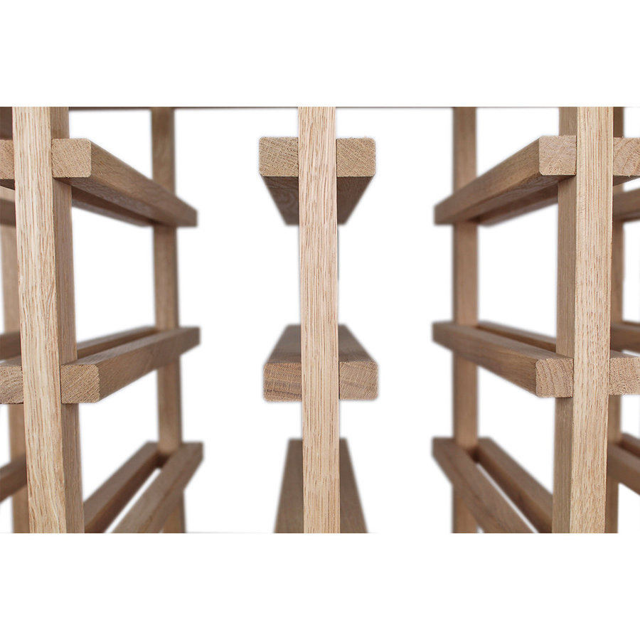 Dit wijnrek is vervaardigd uit hoogwaardig massief eikenhout, met zorg en aandacht voor detail, zoals de zorgvuldige afwerking van de buitenhoeken.