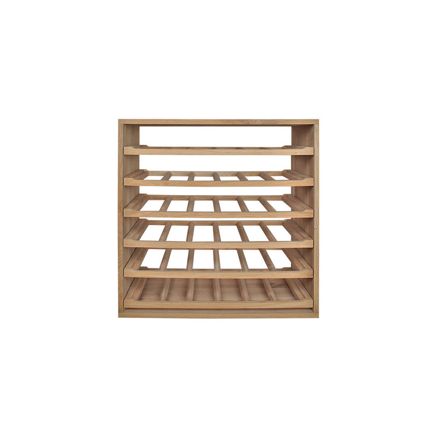 Dit wijnrek is vervaardigd uit hoogwaardig massief eikenhout, met zorg en aandacht voor detail, zoals de zorgvuldige afwerking van de buitenhoeken.
